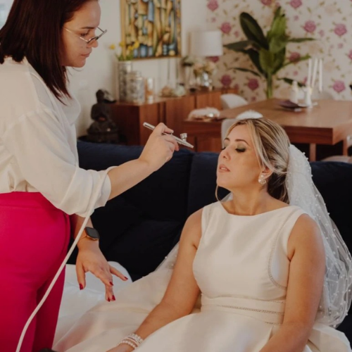 O aerógrafo é uma das técnicas de assinatura da Makeup Brow Bar®, desenvolvido para responder às exigências da maquilhagem profissional em alta definição. Através de uma aplicação ultrafina e uniforme, permite um acabamento natural e impercetível, garantindo maior durabilidade ao longo do dia, resistência ao calor, à luz e à transpiração, sem pesar na pele. É a escolha ideal para noivas e contextos audiovisuais, onde o resultado precisa de se manter consistente mesmo quando visto em detalhe.